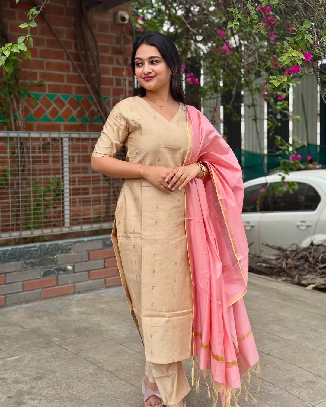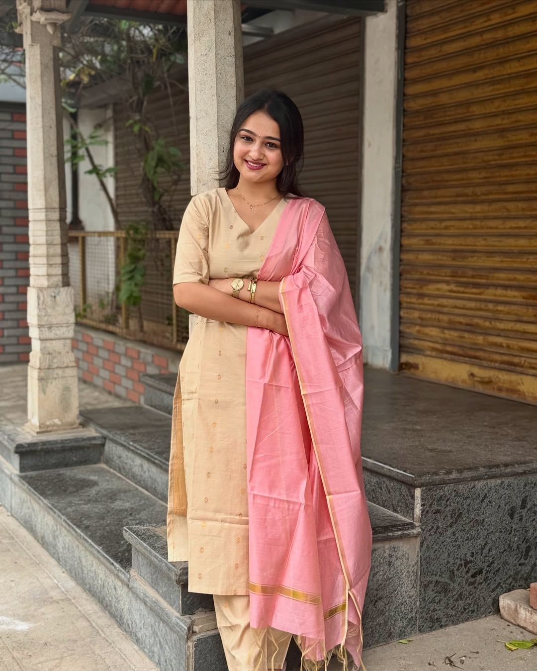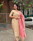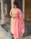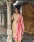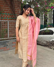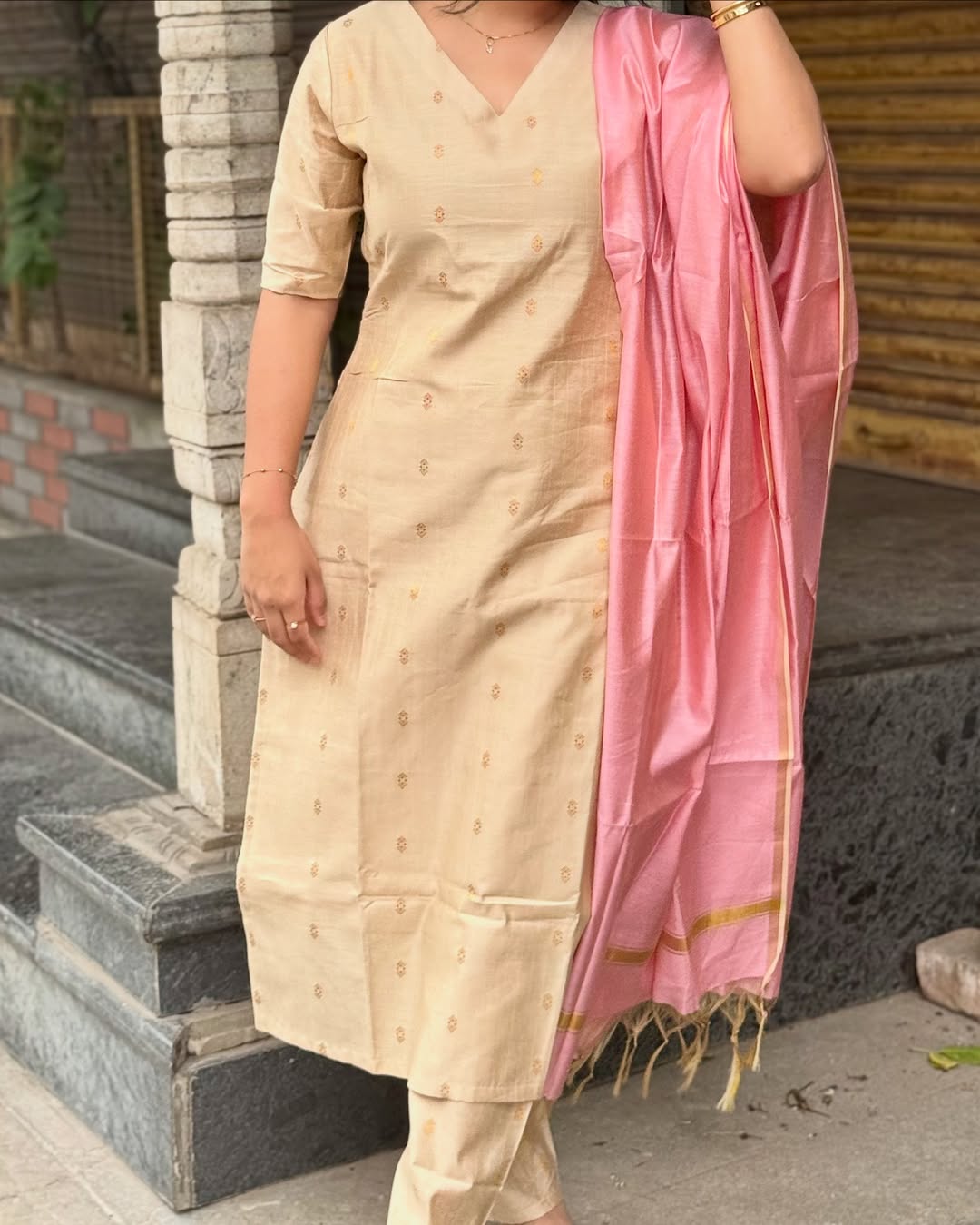 Cream Colour Raw Silk Kurti With Delicate Golden Colour Butta.