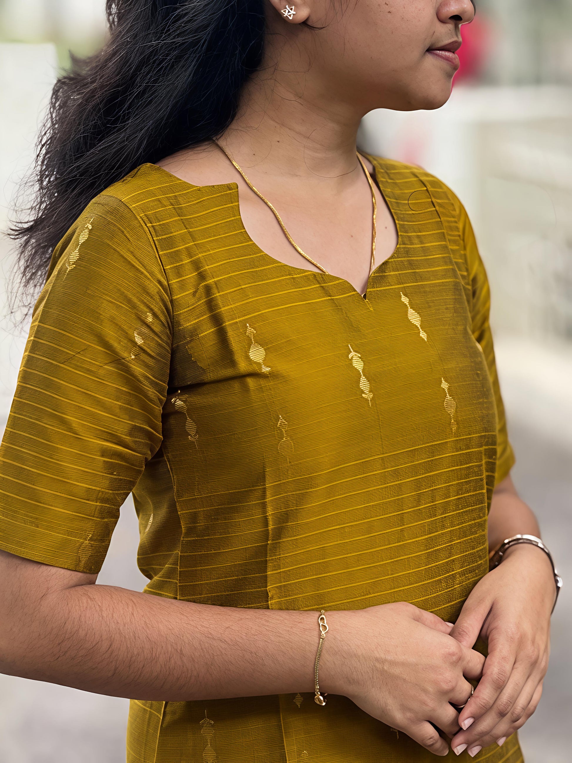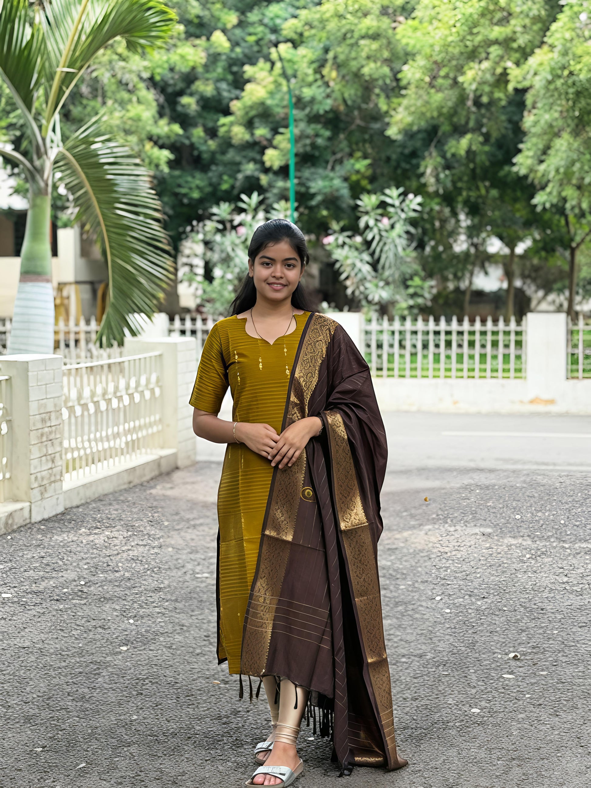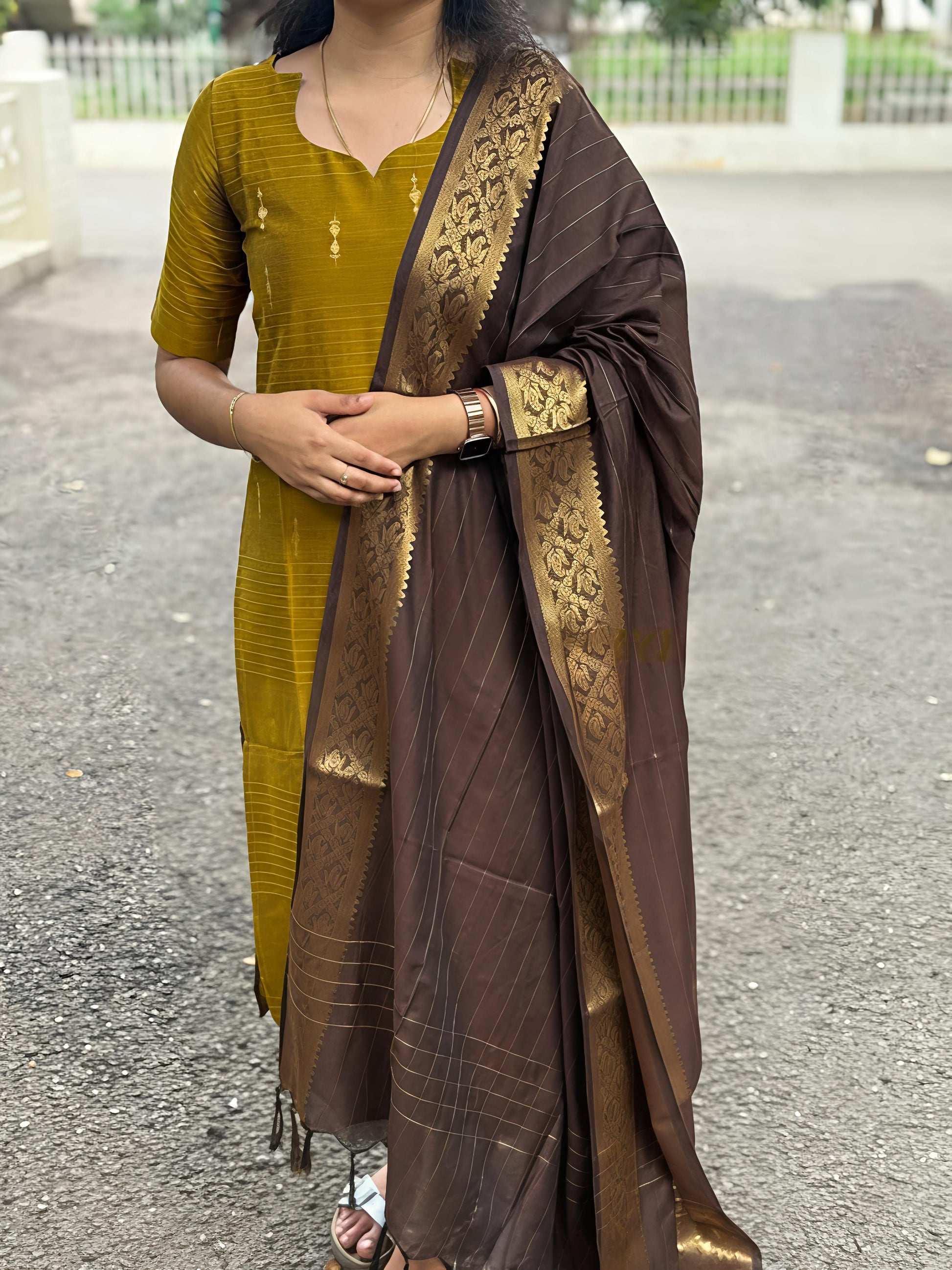 Kundhavi Raw Silk Kurti With Silk Shawl With Zari Border