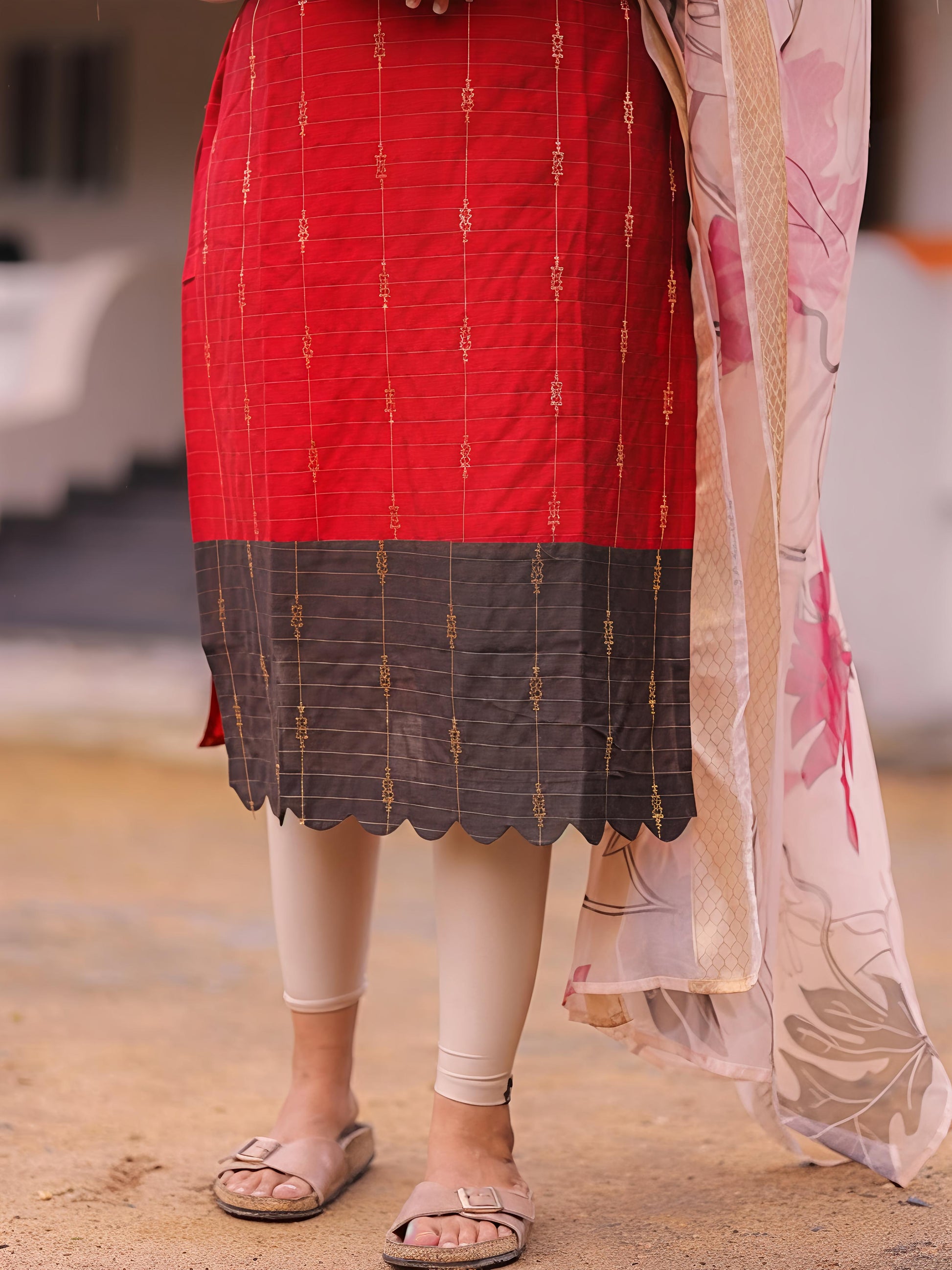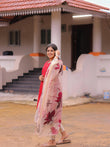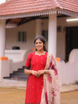 Tanira Red Raw silk kurti with lining paired with Silk shawl